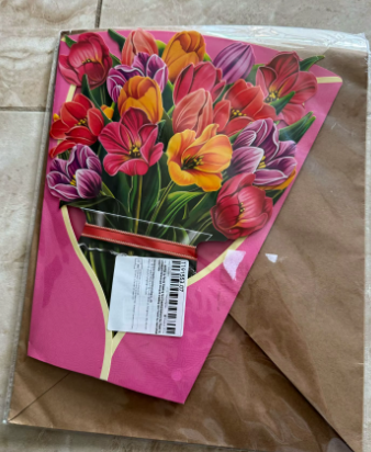 Great alternative to real bouquets: all paper, no maintenance, and the surprise is immediate upon opening the envelope.