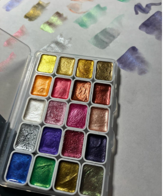 Sì, si mescolano facilmente con acquerelli classici per creare riflessi perlati.