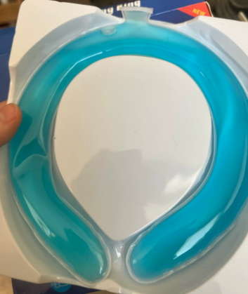 Basta colocá-lo no frigorífico durante 10 a 15 minutos e depois usá-lo ao redor do pescoço. Funciona sem eletricidade nem gel químico.